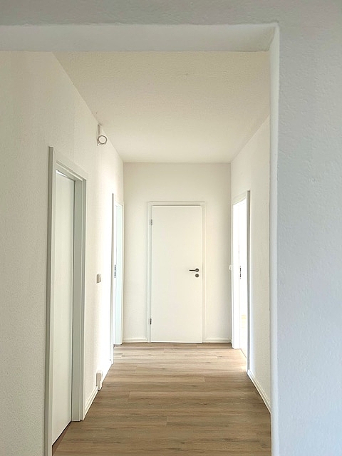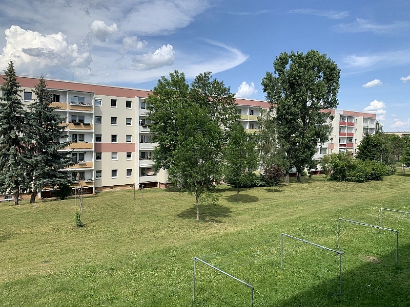 Die Wohnung befindet in einem modernisierten Plattenbau mit 4 Stockwerken. Auf jeder der Wohnetagen gibt es jeweils 3 Wohnungen.