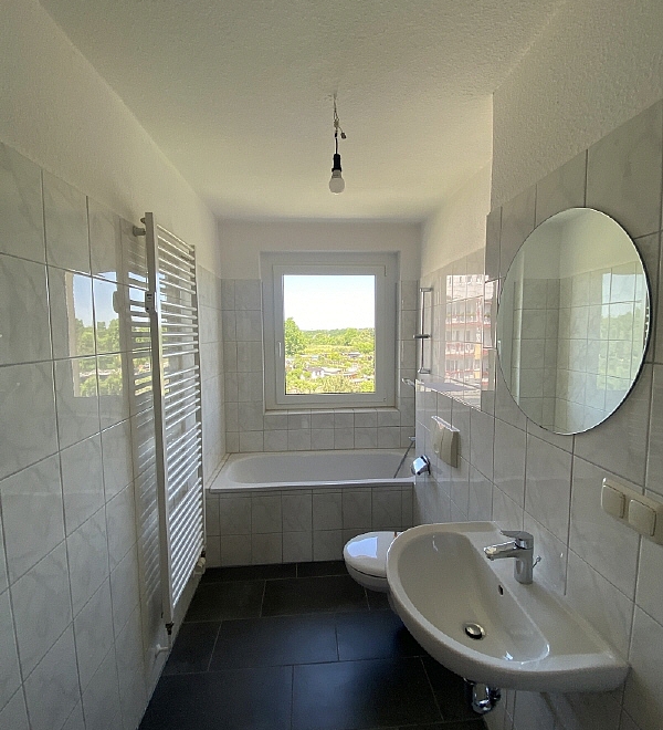 Küche und Bad sind mit Fenster ausgestattet. Das Bad verfügt über eine Badewanne undeinen Waschmaschinenanschluss.