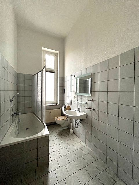 Auf ca. 179 m² verteilen sich 5 Zimmer mit 2 Balkonen, einem riesigen Eingangsbereich / Diele, einer Küche, Tageslichtbad mit Wanne und ein Gäste-WC. Die Wohnung ist teilweise mit Parkett, Stuckdecken und alten Holztüren ausgestattet. Sie verfügt über einen separaten Eingang und eignet sich somit auch ideal für gewerbliche Zwecke (Büro, Praxis , Atelier u.s.w.). Zur Wohnung gehören weiterhin 2 PKW-Stellplätze auf dem Grundstück.