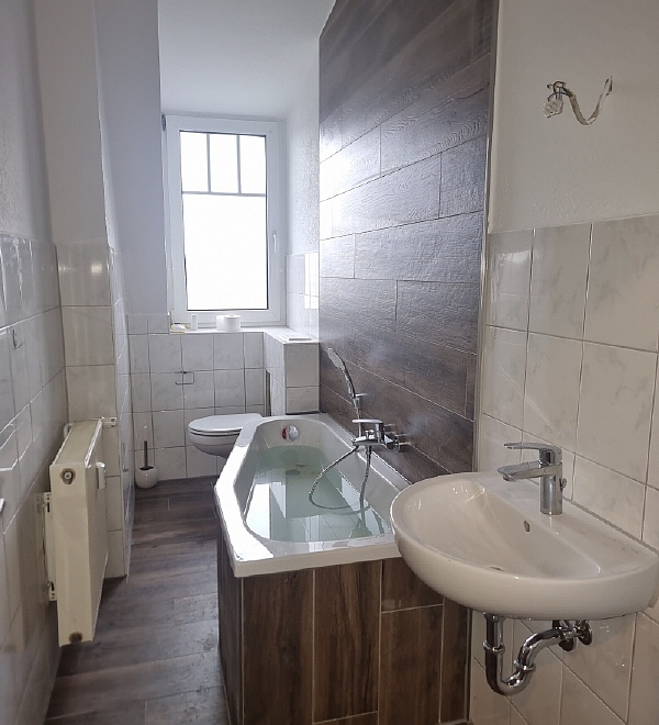 Alle Räume sind vom Flur aus begehbar und mit modernem Laminatfussboden ausgestattet. Im Tageslichtbad befindet sich eine Badewanne.
