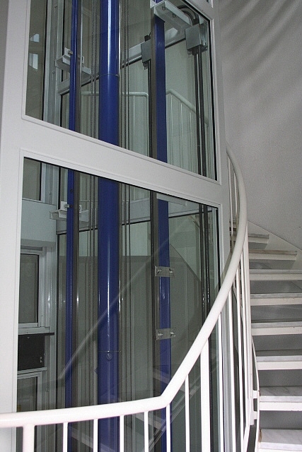 * Treppenaufgang mit Personenaufzug