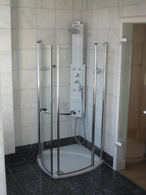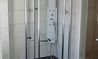* Luxus-Bad mit Eckdusche und in den Boden eingelassener Badewanne