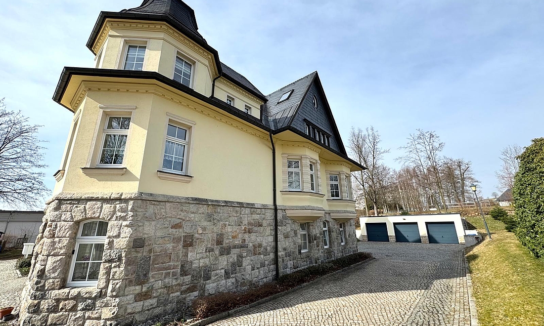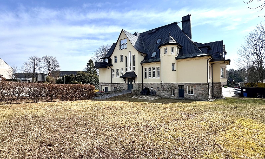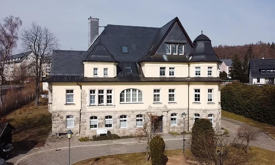 Die Heymann Villa zu Geyer ist ein denkmalgeschütztes Gebäude mit historischem Charme, das auf einem großzügigen Grundstück von ca. 3.000 m² eine attraktive Kombination aus Wohn- und Gewerbefläche bietet.