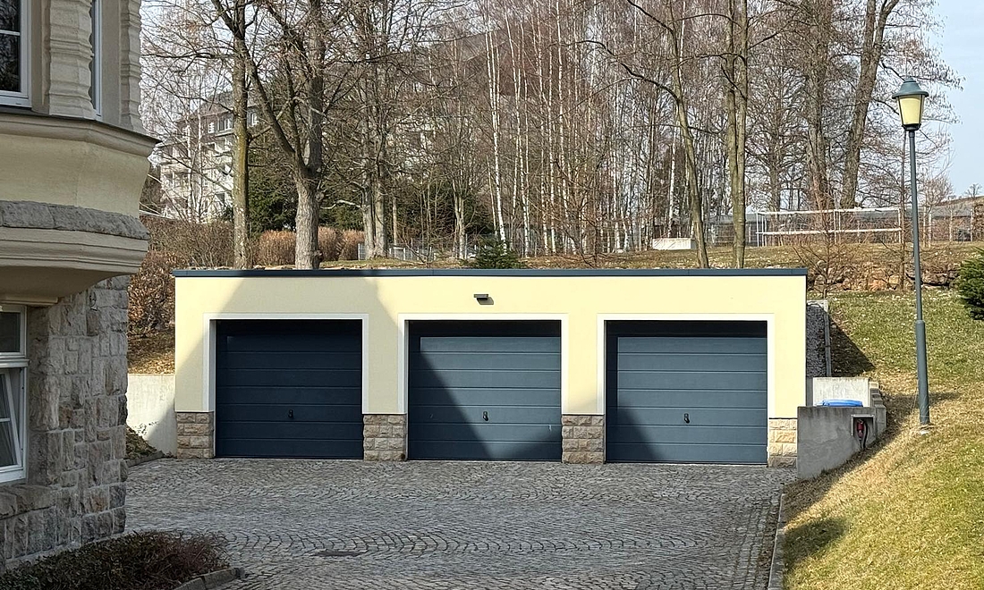 Zum Grundstück gehören zudem drei Garagen sowie 12 Stellplätze, von denen ein Teil der Praxis zugeordnet ist.